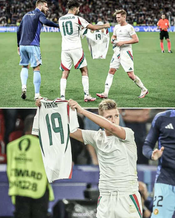 匈牙利队长索博斯洛伊也穿上了队友的球衣为他祈福。